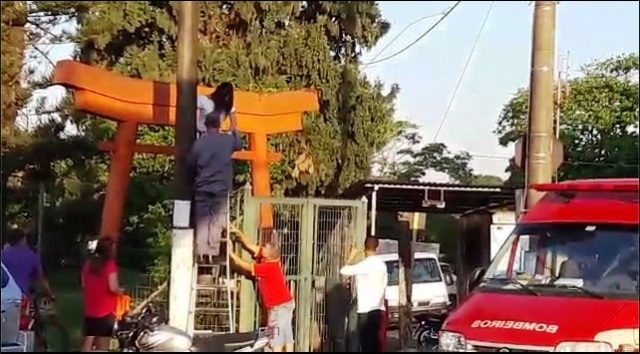 Vendo-se presa no Jardim das Cerejeiras, restou à jovem pedir socorro à equipe do Corpo de Bombeiros de Paraguaçu Paulista